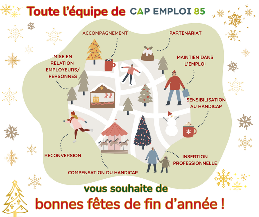 Cap Emploi 85 vous adresse ses meilleurs vœux pour les fêtes de fin d’année et vous remercie pour votre confiance et votre collaboration tout au long de l’année.