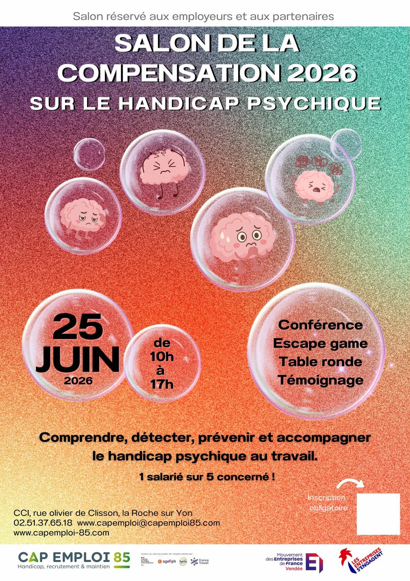 Employeurs, partenaires, le Salon de la compensation 2026 aura pour thème le handicap psychique. Bloquez la date !!