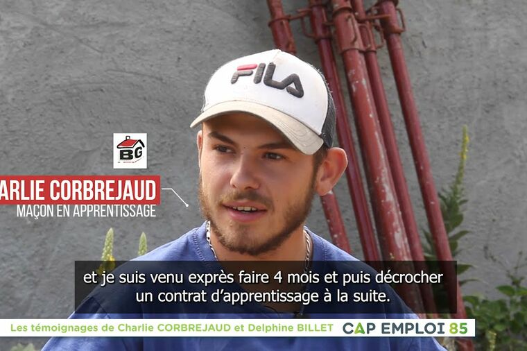 En direct de l'entreprise BILLET Maçonnerie sur l'île de Noirmoutier, Cap emploi 85 vous présente les témoignages de Charlie CORBREJAUD et Delphine BILLET. Un grand merci à eux.